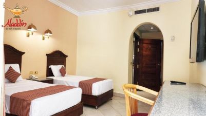 Aladdin Beach Resort 4* се намира на самия бряг на Червено море, в курортната зона на Хургада. Разположен е на около 8–12 км от международното летище и на приблизително 15 км от центъра на града. Хотелът е част от комплекс заедно с съседните Jasmine Village и Ali Baba Palace, с които споделя определени удобства.