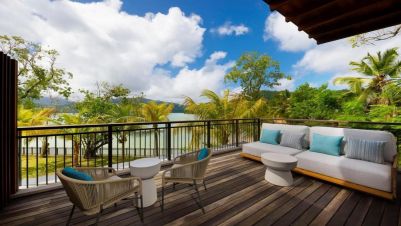 Този 5-звезден хотел предлага 24-часова рецепция и рум-сървиз. Хотелът разполага със стаи и вили на първа линия, всяка със самостоятелни тераси или балкони с изглед към Индийския океан. Храненето включва 5 уникални заведения, чиято кухня предлага кулинарното наследство на Южно Махе. Хотелът разполага с множество малки басейни, уелнес център с две специални стаи за процедури, център за водни спортове, фитнес, безплатен Wi-Fi.