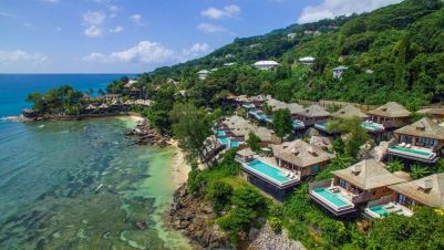 Заобиколен от тюркоазени води и тропически градини, хотелът е на седем километра от забележителностите на Виктория. Предлага безплатно гмуркане с шнорхел и каяци, инфинити басейн и награден СПА център eforea. Всеки престой е в частна вила с балкон с изглед към Индийския океан.