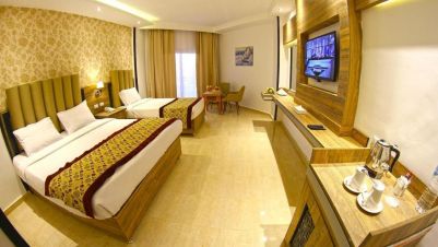 Приблизителна площ на стаята - около 28-32 кв.м. Разполага с телефон, сателитна телевизия, сешоар, сейф, мини бар - срещу допълнително заплащане, електрическа кана с чай и кафе, климатик, баня с тоалетна, балкон или тераса.