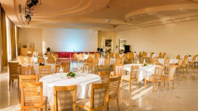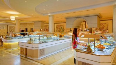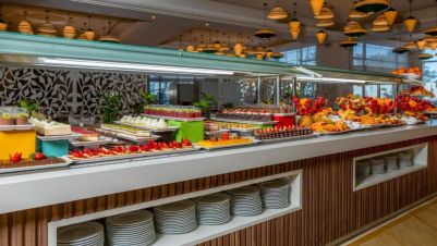 Предлага закуска, обяд и вечеря с разнообразие от международна и местна кухня. Тематични вечери се организират редовно.