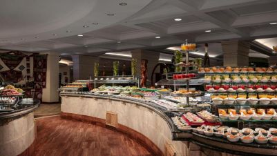 Основният ресторант предлага закуска, обяд и вечеря на блок маса с интернационална кухня. Хотелът разполага и с няколко а ла карт ресторанта – гръцки, италиански, азиатски и ориенталски. Предварителна резервация е необходима за а ла карт ресторантите. Баровете в комплекса предлагат богато разнообразие от напитки и леки закуски през деня.
