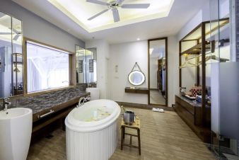 В стаите: Предлагат се луксозни помещения за настаняване на самия плаж или над водата, които се радват на невероятен морски изглед. Всички стаи разполагат с плоскоекранен телевизор със сателитни програми, както и електрическа кана и високоскоростен интернет. Модерните вили в хотелски комплекс Centara Grand Island Resort & Spa Maldives имат големи бани с душ тип тропически дъжд, вана или хидромасажна вана.