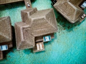 Вилите над водата на Малдивите се отличават с прохладни дървени подове, цветни местни тъкани и традиционен покрив от кокосови палми. Събуждайте се с гледка към искрящата лагуна по време на престоя си в нашия романтичен курорт на Малдивите.