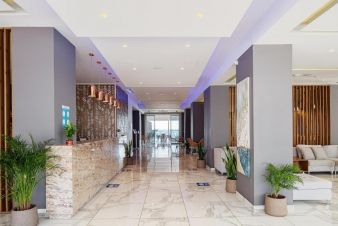 Плаж: Обществен пясъчен плаж на 300 м от хотела (2-ра брегова линия). Чадъри, шезлонги на плажа - срещу заплащане. Чадъри, шезлонги край басейна - безплатно. Дължината на плажа е 400 м. Между хотела и плажа има път и крайбрежна алея.