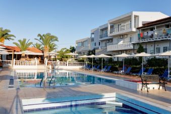 Хотелът е построен в традиционен гръцки стил и е разположен на хълм с красива гледка към морето. Подходящ за семейна почивка.