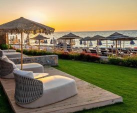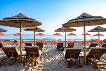 Плаж: Частен пясъчен плаж на 50 м от хотела, на първа брегова линия. Осигурени са плажни кърпи. За гостите, отседнали в категориите Suite, шезлонги и чадъри се предоставят безплатно.