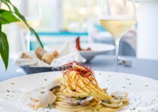 Плаж: Частен пясъчно-камъчен плаж на 300 м от хотела (1 брегова линия), слизане по стълби, трансфер до плажа, срещу заплащане. Чадър и 2 шезлонга на стая безплатно, кърпи срещу заплащане.
