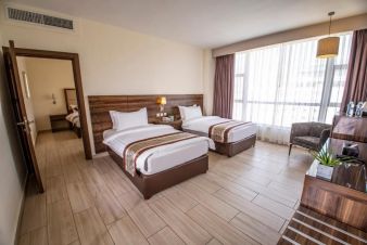 Разположение: Нов луксозен четиризвезден хотел се намира в сърцето на град Акаба, на 10 километра от международното летище „Крал Хюсеин“, на няколко минути пеша до плажа Ал-Гандур (около 700 м) и омайващото Червено море, на 15 минути пеша от крепостта Акаба и на кратко разстояние от всички пазари, магазини, ресторанти и кафенета.