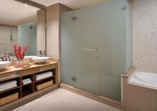 В стаите: Стаята разполага с телевизор, централен климатик, минибар, сейф, вана или душ, сешоар, телефон, удобства за приготвяне на чай и кафе, ютия, керамично покритие, интернет, халати и чехли. Осигурен е и рум-сървис.