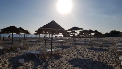 Плаж: Собствен, пясъчен плаж. Чадъри и шезлонги на плажа и при басейна - безплатно. Плажни кърпи – срещу заплащане.