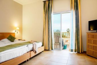 В стаите: Хотелът разполага с общо 321 стаи, които са разположени в 5 триетажни сгради и комплекс от бунгала на един етаж - Standard Room (26 кв.м), Standard Room Sea/Pool View (26 кв.м), Connected Room (2х28 кв.м, реновирани стаи, представляват две двойни стаи със свързана врата), Family Room (48 кв.м), Bungalow Superior (36 кв.м с морска гледка). Всички стаи са оборудвани с климатик, телевизор, баня с душ/вана, сешоар, мини бар (празен), балкон или тераса, сейф, Wi-Fi, тоалетни принадлежности. Почистване на стаите - всеки ден.