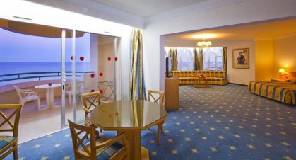В стаите: Хотела разполага с общо 395 стаи, които са разположени в пететажна сграда с асансьор - Standard Room (25 кв.м), Sea View Room (25 кв.м), Suite Junior (52 кв.м с хол). Всички стаи са оборудвани с климатик, телевизор, баня с душ/вана, сешоар, мини бар (празен), балкон, сейф. Почистване на стаите - всеки ден.