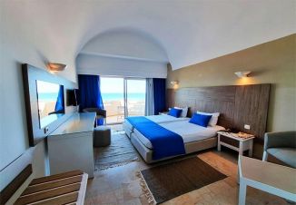 В стаите: Хотелът разполага с общо 330 стаи, разположени в четириетжна сграда с 2 асансьора - Standard Room (24-26 кв.м), Sea View Room (24-26 кв.м), Family Room (26-28 кв.м с една спалня), Superior Family Room (36-38 кв.м с две спални, отделени с врата). Всички стаи са оборудвани с климатик, телевизор, мини бар (ботилирана вода в деня на настаняване), баня с душ/вана, сешоар, сейф, балкон/тераса. Почистване на стаите - всеки ден.