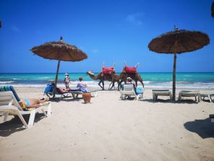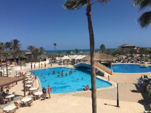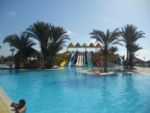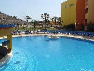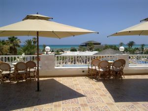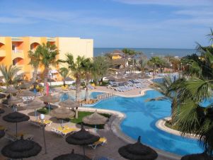Разположение: Хотела ​​се намира на 25 км от летище Джерба ​​и на 14 км от главния град „Houmt Souk“, на североизточното крайбрежие на острова. Той е напълно климатизиран, изграден е в 2 сгради на 2 етажа, в сърцето на буйна градина от 6,5 хектара, засадена с палми, маслинови дървета и мимози. Хотелът е разположен директно на красив пясъчен плаж.