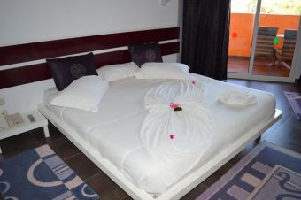 Стаи: Хотелът разполага с 450 двойни и тройни стаи, от които 92 свързани помежду си и 4 апартамента: 3 старши апартамента и 1 президентски апартамент; Всички приятно декорирани в екзотичен стил, повечето от които са с изглед към морето, оборудвани с баня или душ, тоалетна, климатик (топло и студено) с индивидуална настройка, телефон, сателитна телевизия, теракотен под, балкон, сейфове в стаите и минибар .