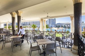 В стаите: Хотелът разполага с общо 452 стаи и апартаменти, разположени в основна сграда - Standard Room Garden View (46 кв.м), Sea View Room (41 кв.м), Family Room (65-75 кв.м, спалня и отделна всекидневна с разтегателен диван), Suite Junior Sea View (65-75 кв.м, кът за сядане с разтегателен диван), Premium Suite Sea View (60-65 кв.м, отделна всекидневна).